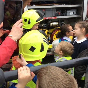 They explored the fire engine thoroughly - even having a go with the hosepipe!