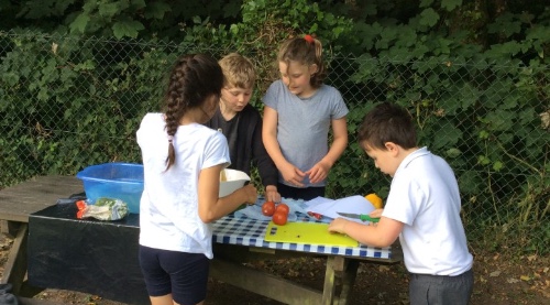 "This afternoon, all of KS2 went out onto the field to make some of the food that the Mayans used to make. We learned that the Mayans were the first people to make chocolate. Mrs Hawker showed us how to cut up vegetables, even onions! She told us that a top-tip to splitting an avocado in half after we had cut it down the middle, is to twist it! Then you have to put the pip in the bin. We learned how to make guacamole, salsa and vegetable stew. We even added corn on the cobs to our meal. After that we all cooked marshmallows."