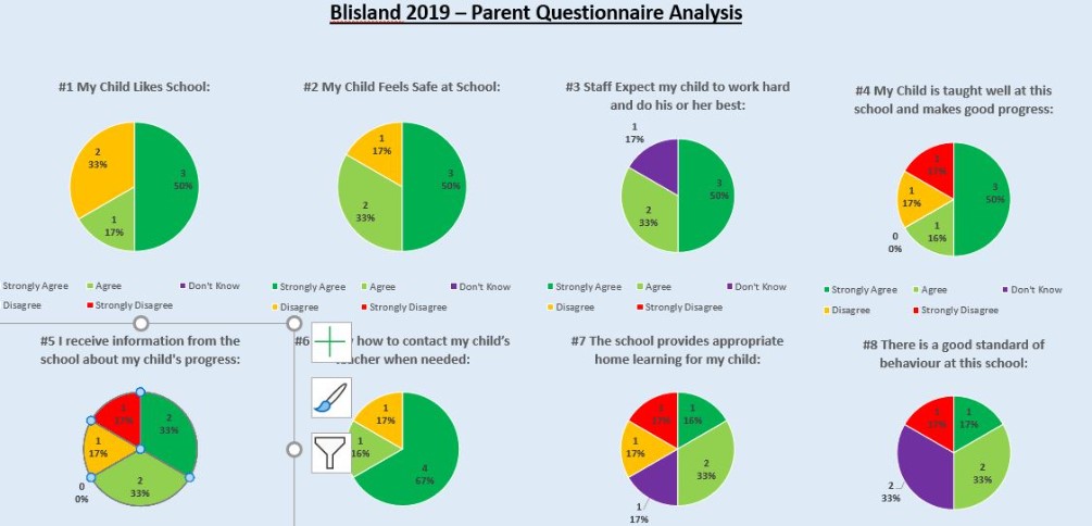 time to complete our Summer 2019 parent questionnaire. We have collatedthe information, you have kindly provided and can now share the results with you. Your comments and suggestions help to support the school and Trust in their continued effort to improve and develop areas within current