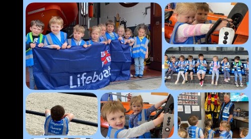 Our Receptions and Nursery were lucky enough to go on a visit to Looe lifeboat station. They had some fantastic weather for their visit and had a fabulous time looking around the lifeboat station: seeing the rescue boats, equipment and understanding how they do their job.